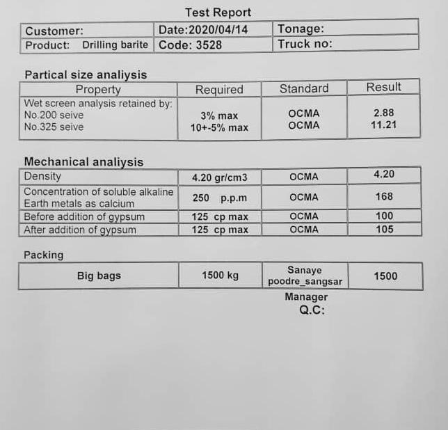 Aşağıdan gaz veya sıvı basıncının yüksek olduğu alanlarda derin gaz ve petrol sondajlarında mikronize barit tozu kullanılmaktadır. Sondaj kullanılırken, ağırlığından dolayı dönüş sırasında basıncı kontrol etmek için killi su ile barit ilave edilen ağır bir malzemeye ihtiyaç vardır. Kimyasal bileşimi ve nispeten ucuz fiyatı bakımından ağırlığı olması nedeniyle bu ürünün faydalı özellikleri tercih edilmektedir. Bu ağ endüstrisinde kullanılan tozun yumuşaklığı 200, kullanılan baritin özgül ağırlığı 4,2’dir.